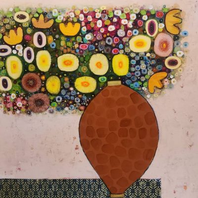 SOLD : Limoncello Sotto il Sole by Lais Perske.Mixed media on canvas in timber frame32x32